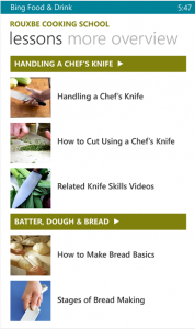 Foodies will be glad to hear that Bing Food and Drink is getting an update too. If you are a fan of eating or cooking food, this app is a dream to use. Microsoft is updating the app with a major focus on learning -- tutorial videos to learn about cooking techniques, plus recipes and tips from world-renowned chefs. You can now also add additional sources from popular places like "AllRecipes, Epicurious, Saveur and food bloggers like Food 52".