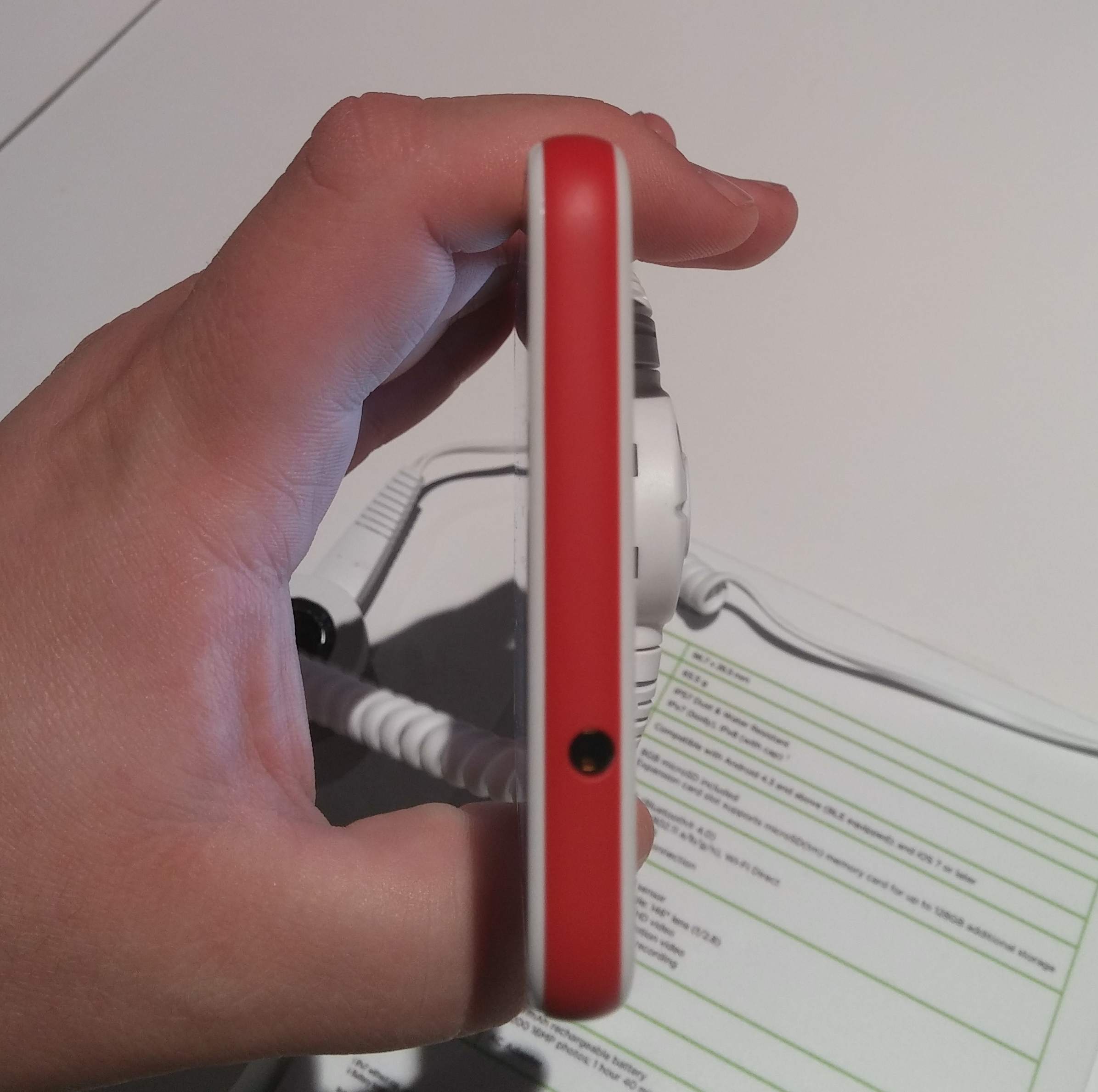 It connects by Bluetooth to your smartphone on first pairing, but the HTC representative tells me it uses Wi-Fi direct on subsequent connections. Because it can be controlled by a smartphone from a distance, you can easily position it in an optimal location while standing a distance, out of the way. HTC uses the example of a father at a daughter's dance recital; the father is stuck in the back row, but he has placed the RE camera in the front -- quite genius.