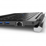 "With a 12.5-inch display, the Portégé Z20t, provides the perfect balance between mobility and performance. Built with an extremely light, yet durable magnesium alloy, the tablet weighs only 1.6 pounds3 and when combined with the keyboard dock, just 3.3 pounds. The keyboard dock features a simple hinge mechanism that allows the tablet to be detached with one hand. The attachment mechanism is also reversible, enabling a presentation mode for showing content to a group of people", says Toshiba.