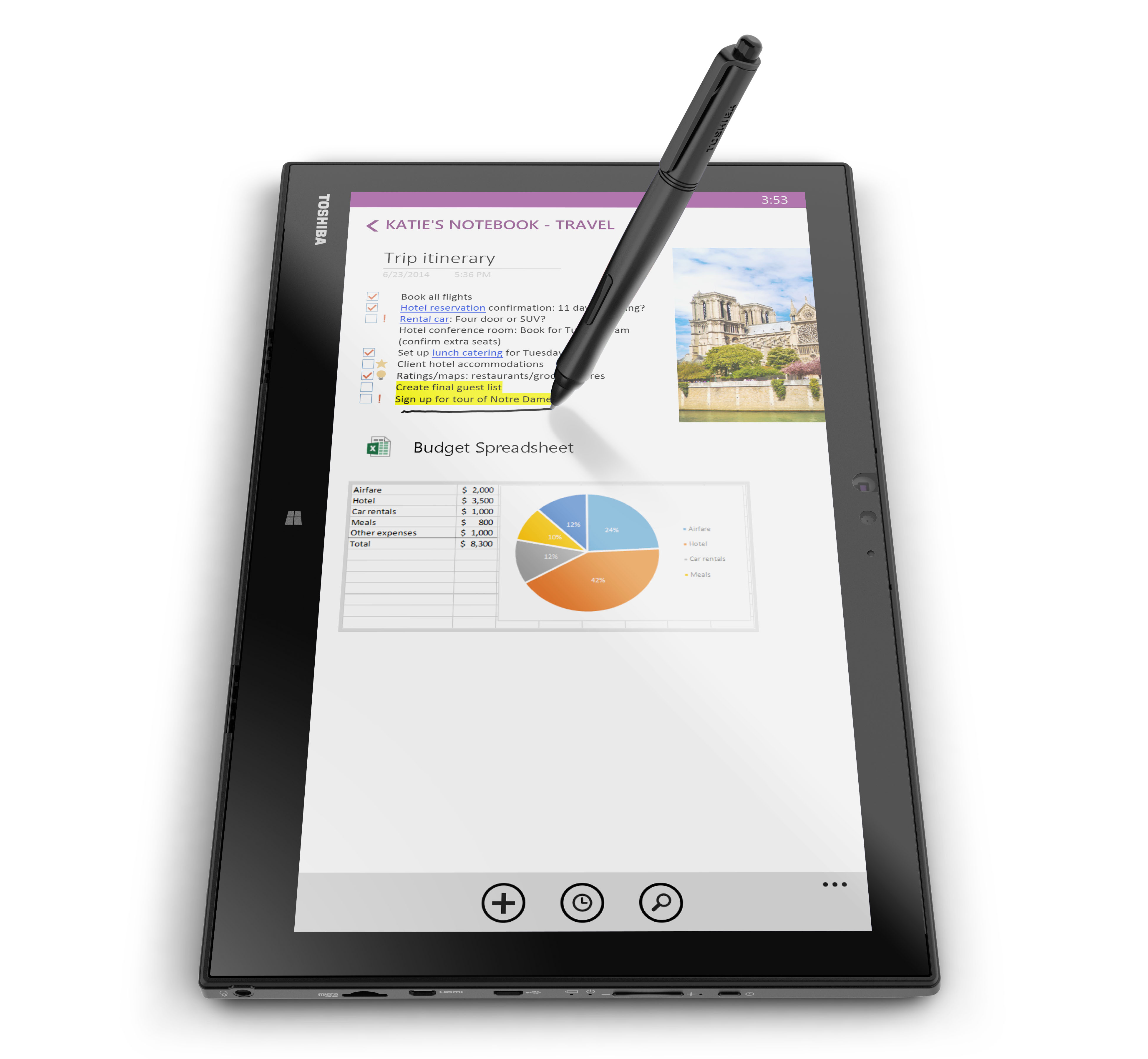 Artists, take notice -- Toshiba's digitizer is an honest-to-goodness Wacom variant. Many people -- creative-types mostly -- were disappointed that the Surface Pro 3 has an N-trig model instead.