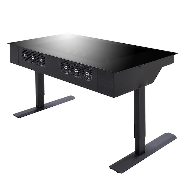 If you want to truly maximize desk space, why not just use your desk as a chassis? No, I haven't gone mad -- there are actually desks that can double as a computer case. Today, famed case-maker, Lian Li, launches such a product, and it looks amazing. Called "DK-05," it can accommodate two motherboards (up to EATX), allowing the user to fit dual computers into one chassis; this includes two PSUs and eight PCI cards per board. What makes it particularly impressive, however, is that the desk is motorized, meaning the height can be adjusted with the press of a button, turning it into a standing desk when needed. As you can guess, this chassis desk is insanely expensive.