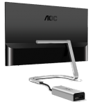 Today, AOC unveils a beautiful 1080p monitor designed by Studio F. A. Porsche. It offers 250 cd/m2 brightness in a choice of two sizes -- 24-inch (PDS241) and 27-inch (PDS271). It features a beautifully designed stand and extremely thin bezels. What really makes it stand out, however, is the breakout box that houses the HDMI (no DisplayPort) and power ports; there are no connection options on the monitor body itself.