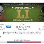 As a New Yorker and Jets fan, I don't have a horse in the race, but I do have a team that I am rooting for -- the Atlanta Falcons. Why? Because the Patriots have already won many championships, and quite frankly, New York and New England generally have a hardcore sports rivalry. Unfortunately for me and some others, according to Microsoft, Tom Brady and team will be victorious tonight.