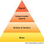 Below the Digirati are the subject matter experts. Malware writers, identity collectors, and individuals who hoard zero-day vulnerabilities and other exploits sit on this level of the digital crime economy. These individuals oftentimes sell access to their goods and services to the next tier, which consists of botnet owners, cashiers, spammers, and other brokers and vendors.